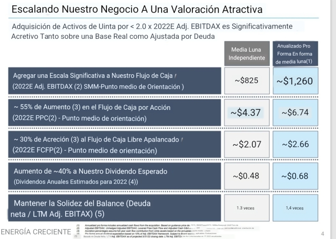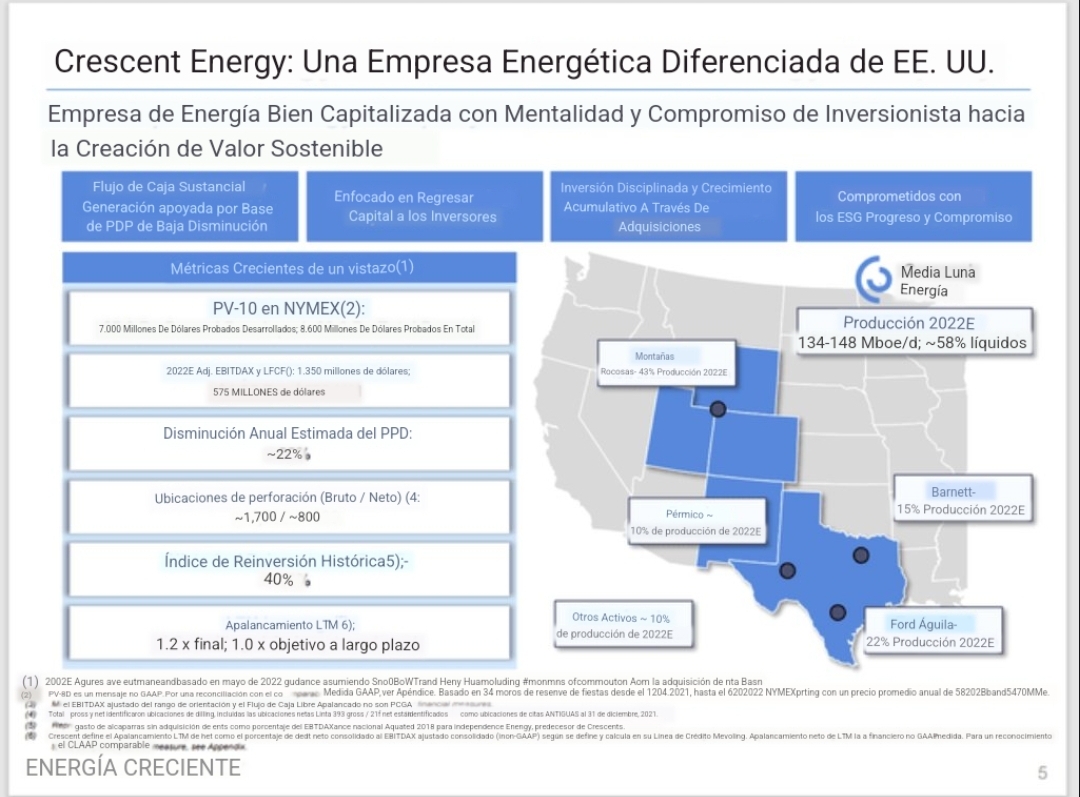 - Transición Energética: Crescent Energy está posicionada para beneficiarse de la transición energética, ya que el gas natural jugará un papel clave en la generación de energía renovable hasta que las baterías se implementen a gran escala.